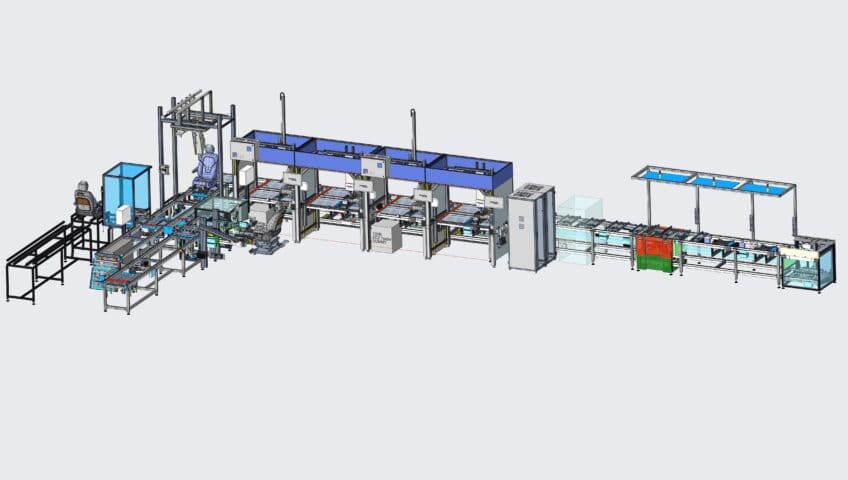Rear armrest assembly line for automobiles. This line consists of independent stations, both manual and semi-automatic, for the assembly of the armrest. The line is divided into 3 zones: DLE, MAL and Final Inspection.   GENERAL INFORMATION Dimensions of the product to convey: 400 x 260 x 80 mm Installation Tak-time: 46 seconds WORKING STATIONS …