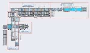 - Zona 0: Intercambiador de pallets. Cambio de pallets de la línea principal a EOL (End Of Line)