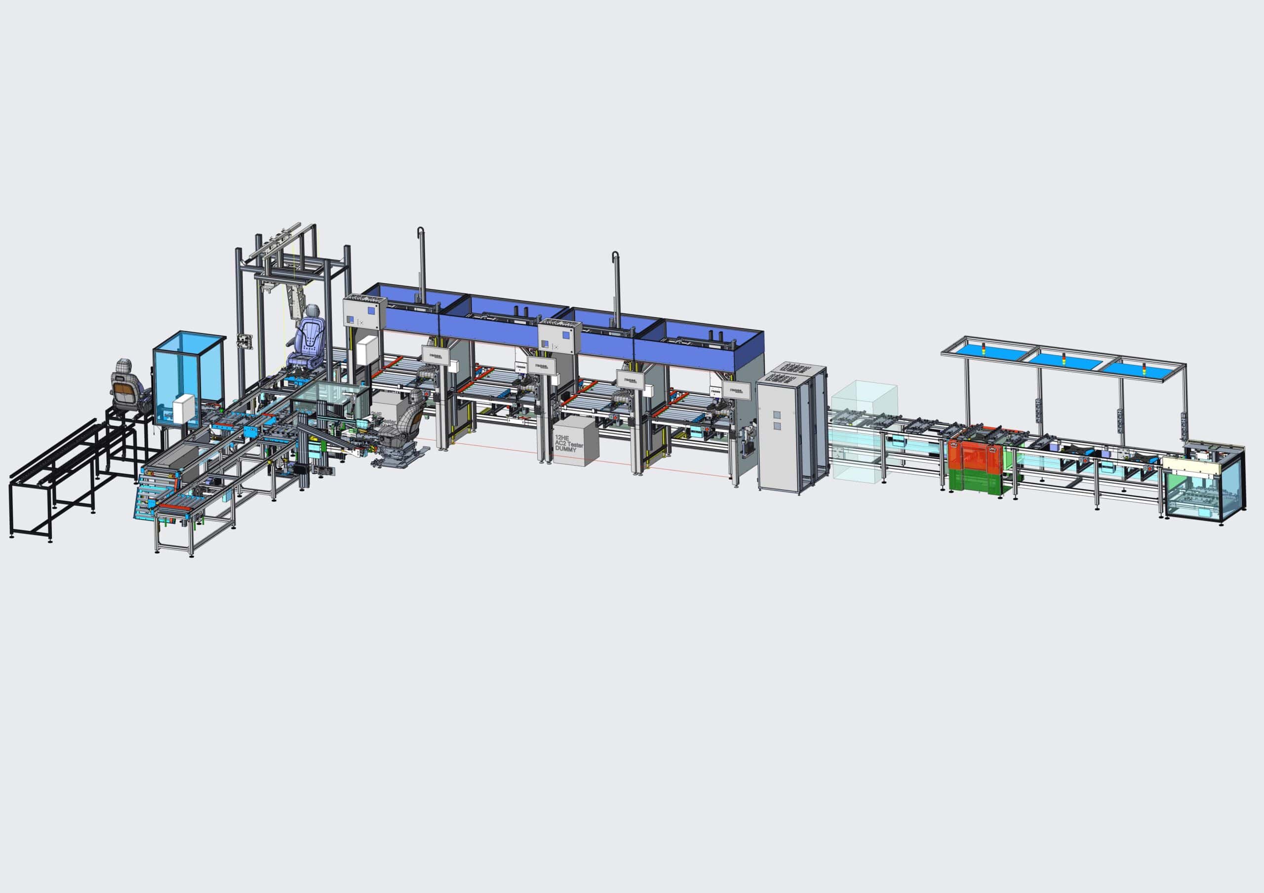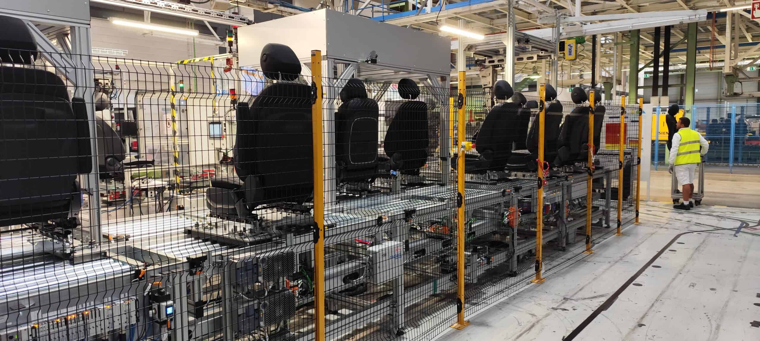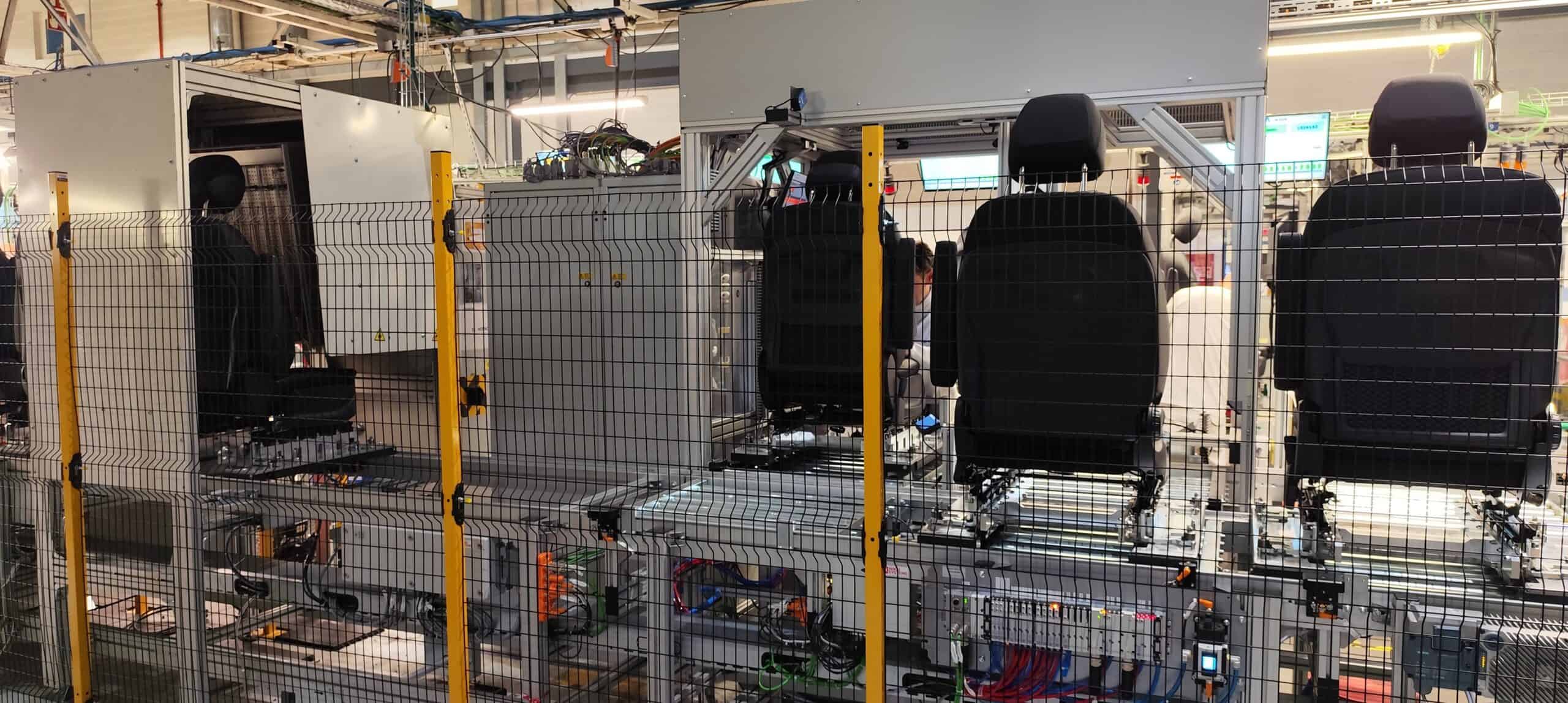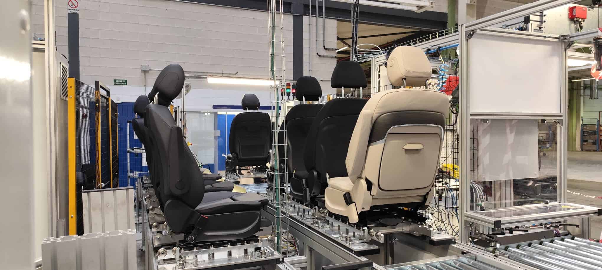 Línea FMS para asientos de automoción (furgoneta) dividida en 4 zonas independientes.
